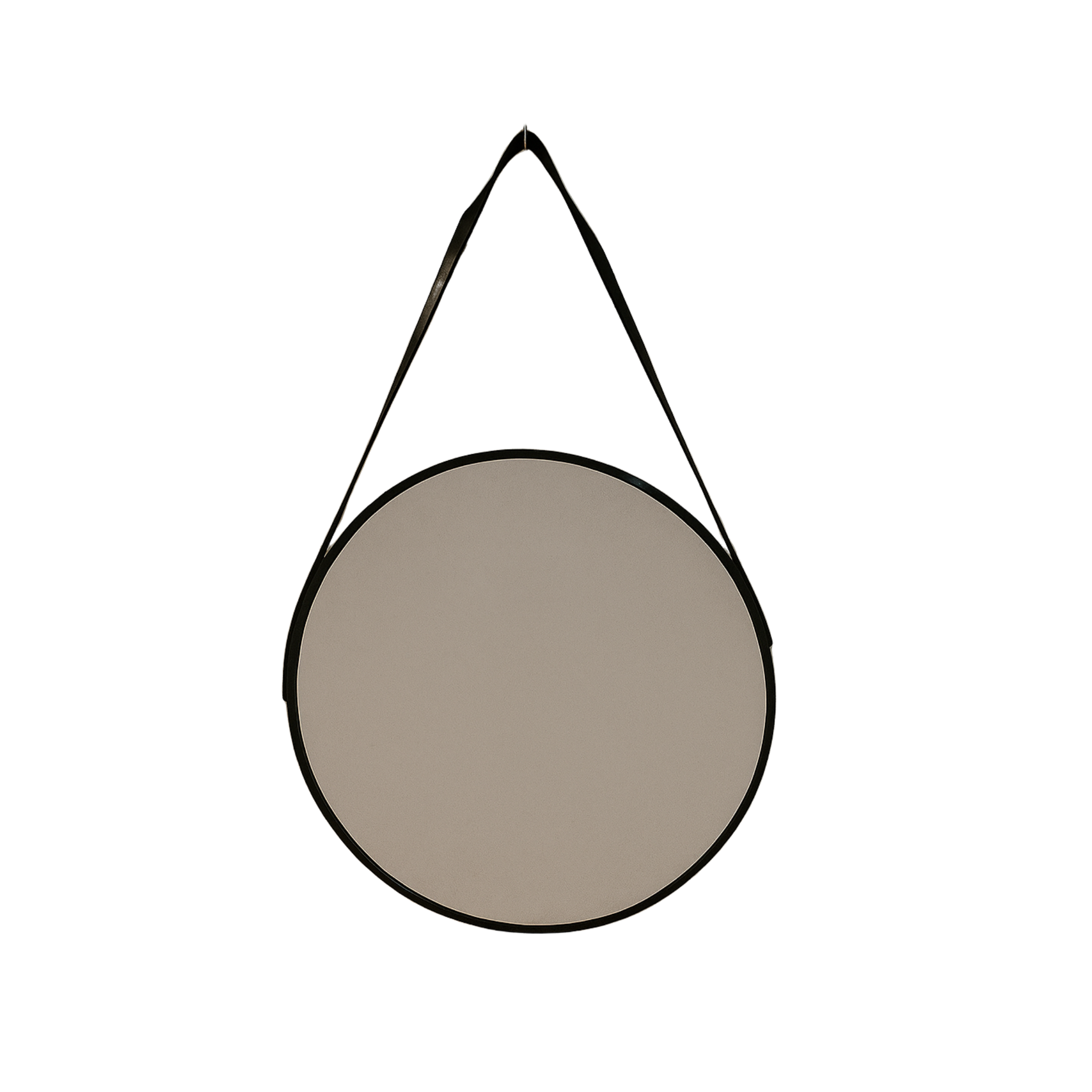 Featuring a sturdy black metal frame and a stylish faux leather hanging strap, this mirror effortlessly blends functionality with elegance. Its minimalist round design complements a variety of décor styles, from industrial lofts to modern apartments.