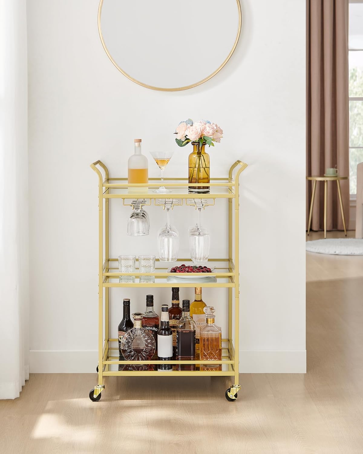 [Sturdy and Durable] Made of a steel frame, and easy-to-clean tempered glass, this storage trolley is built to last, ensuring stability and long-term use for all your entertaining needs