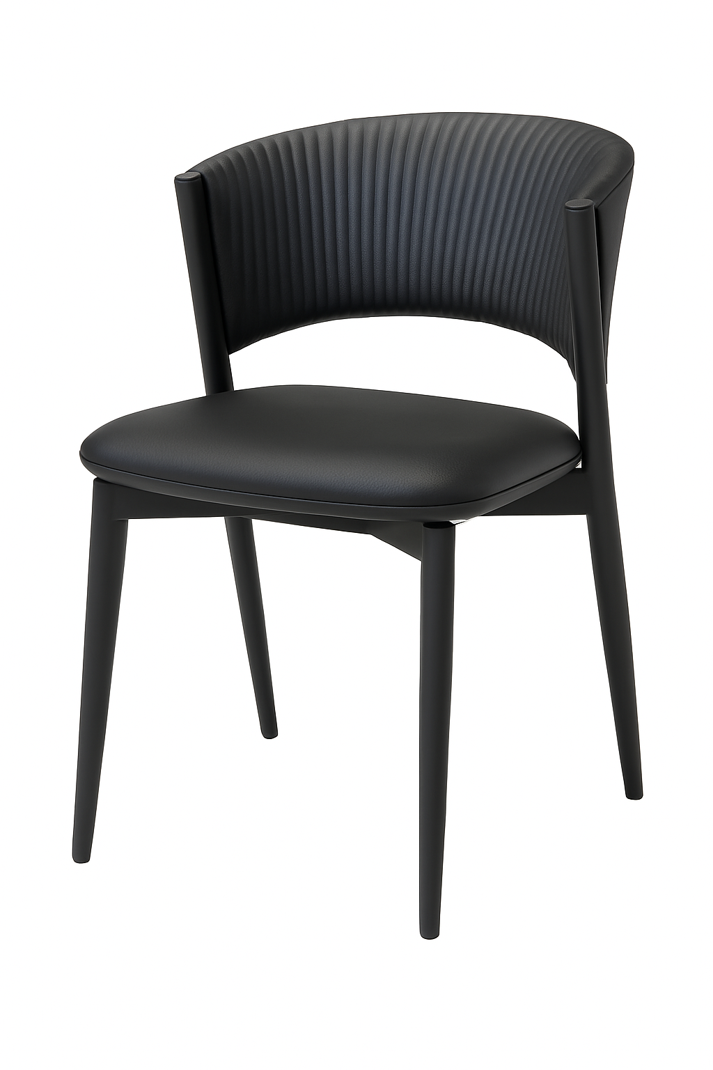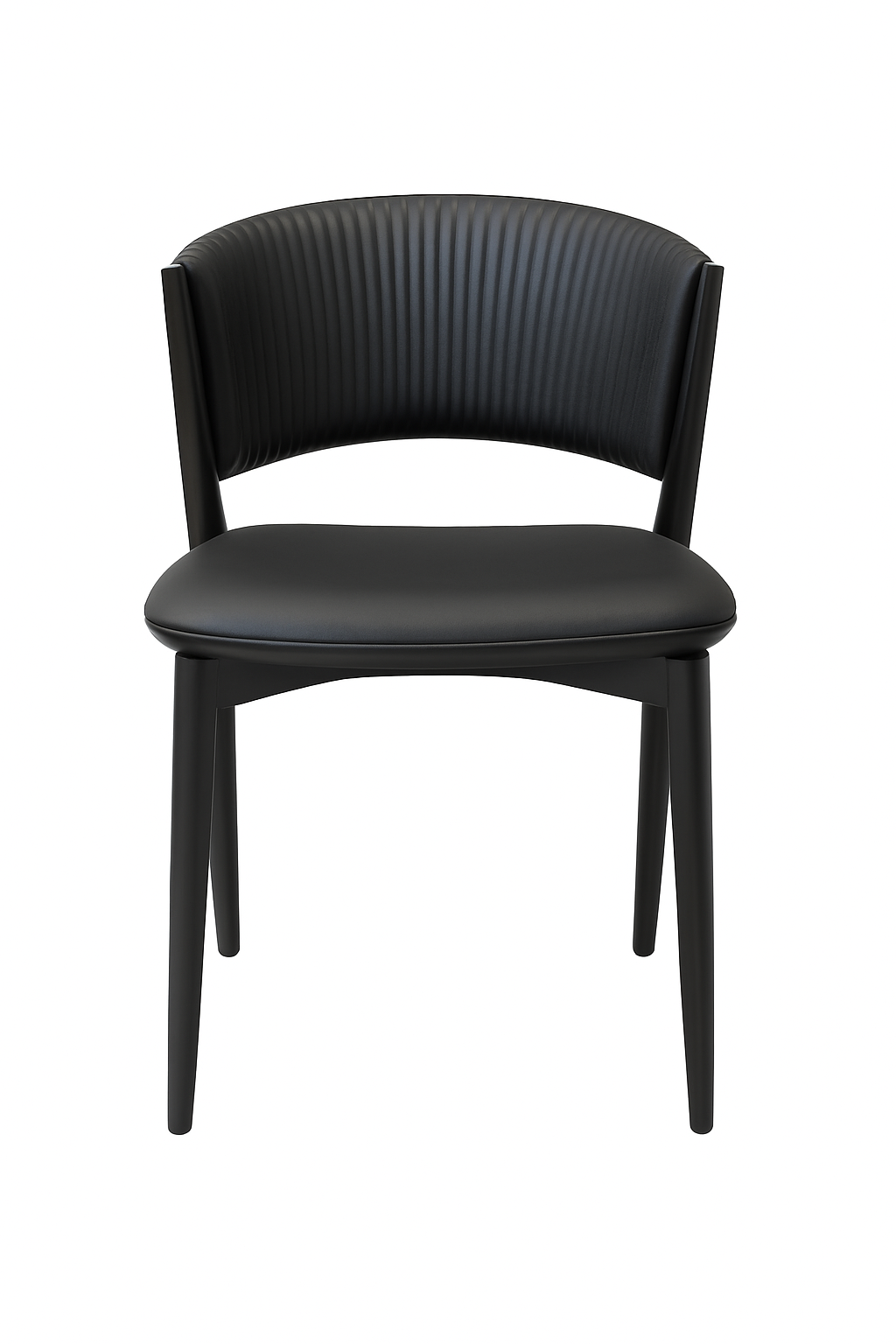 Add a touch of modern elegance to your dining or living space with this Set of 2 Black Faux Leather Dining Chairs. Featuring a curved ribbed backrest for ergonomic comfort and a smooth padded seat for lasting support, these chairs combine sleek design with everyday practicality.