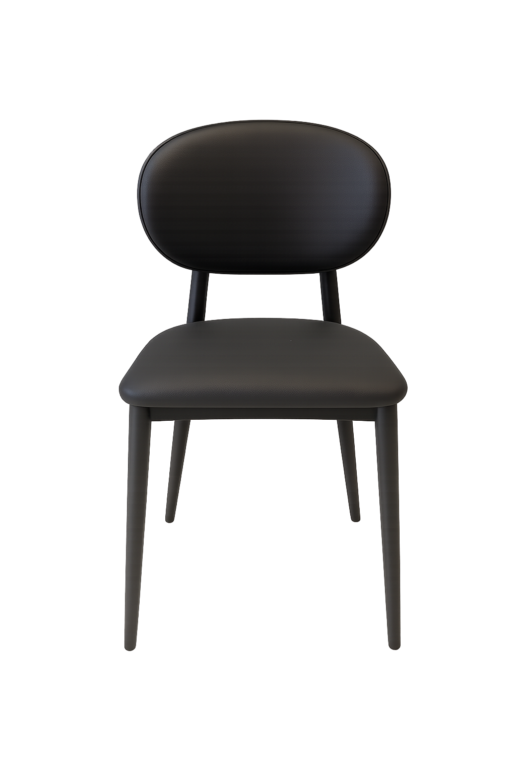 Elevate your dining or workspace with this modern black faux leather chair, designed for both comfort and style. Its curved backrest provides ergonomic support, while the smooth faux leather upholstery adds a touch of sophistication. The sturdy black metal legs ensure lasting durability and stability, making it perfect for daily use.