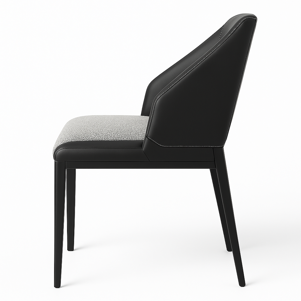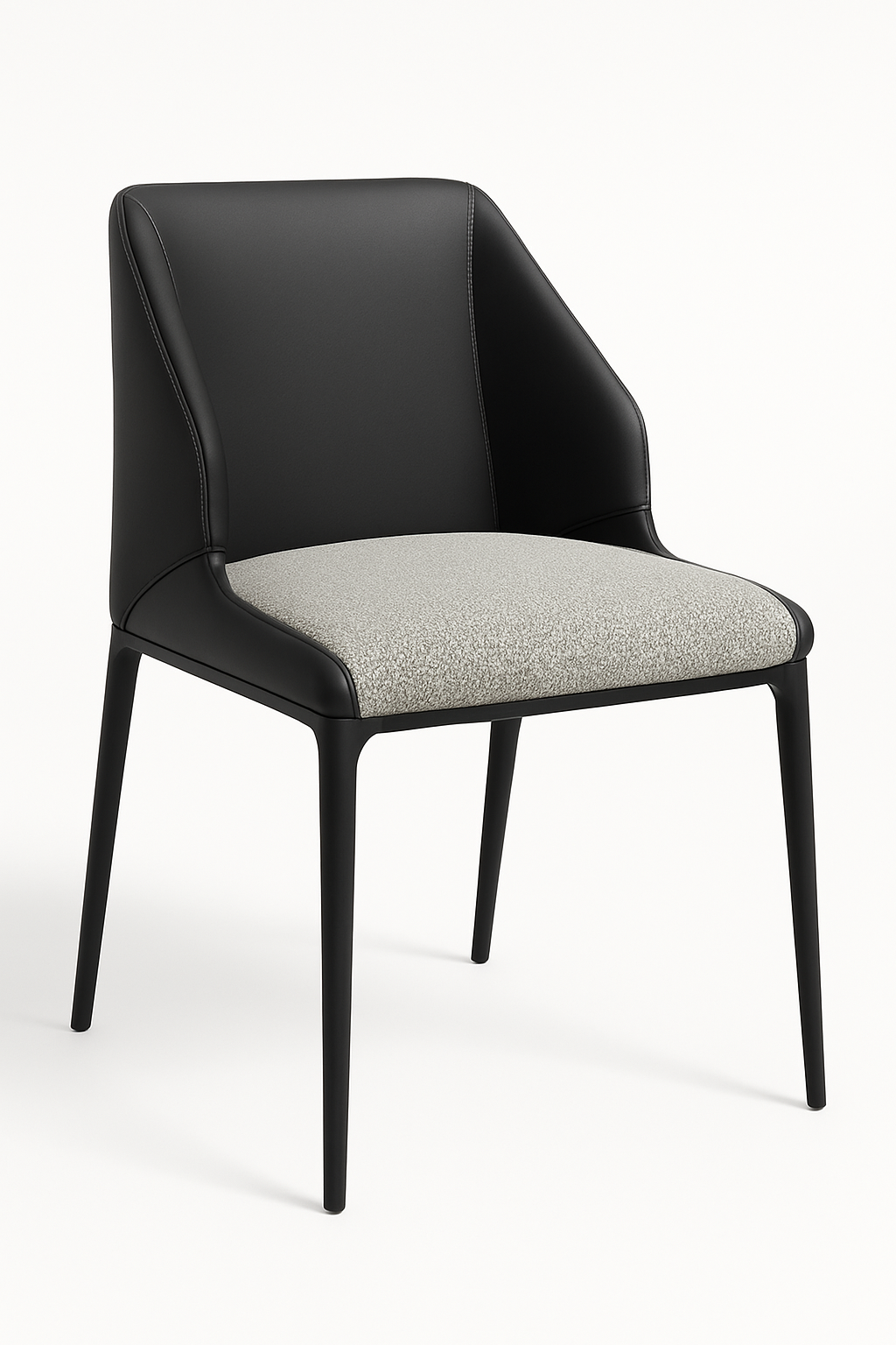 Elevate your dining experience with this set of 2 black and gray upholstered dining chairs. Designed for both comfort and sophistication, these chairs feature a sleek black faux leather backrest paired with a soft textured gray fabric seat. The contrast of materials adds a modern and inviting touch to any dining or living space.