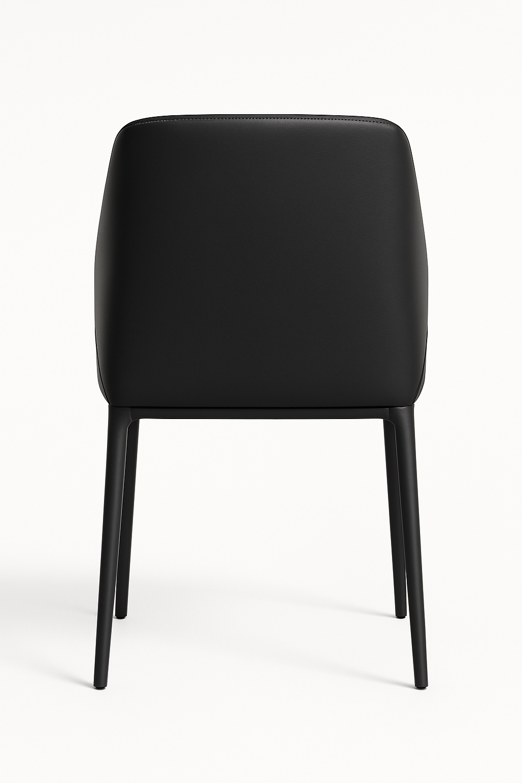 The ergonomic curved back and padded seat provide excellent support, while the sturdy black metal legs ensure long-lasting stability. Perfect for dining rooms, offices, or contemporary interiors seeking both style and comfort.