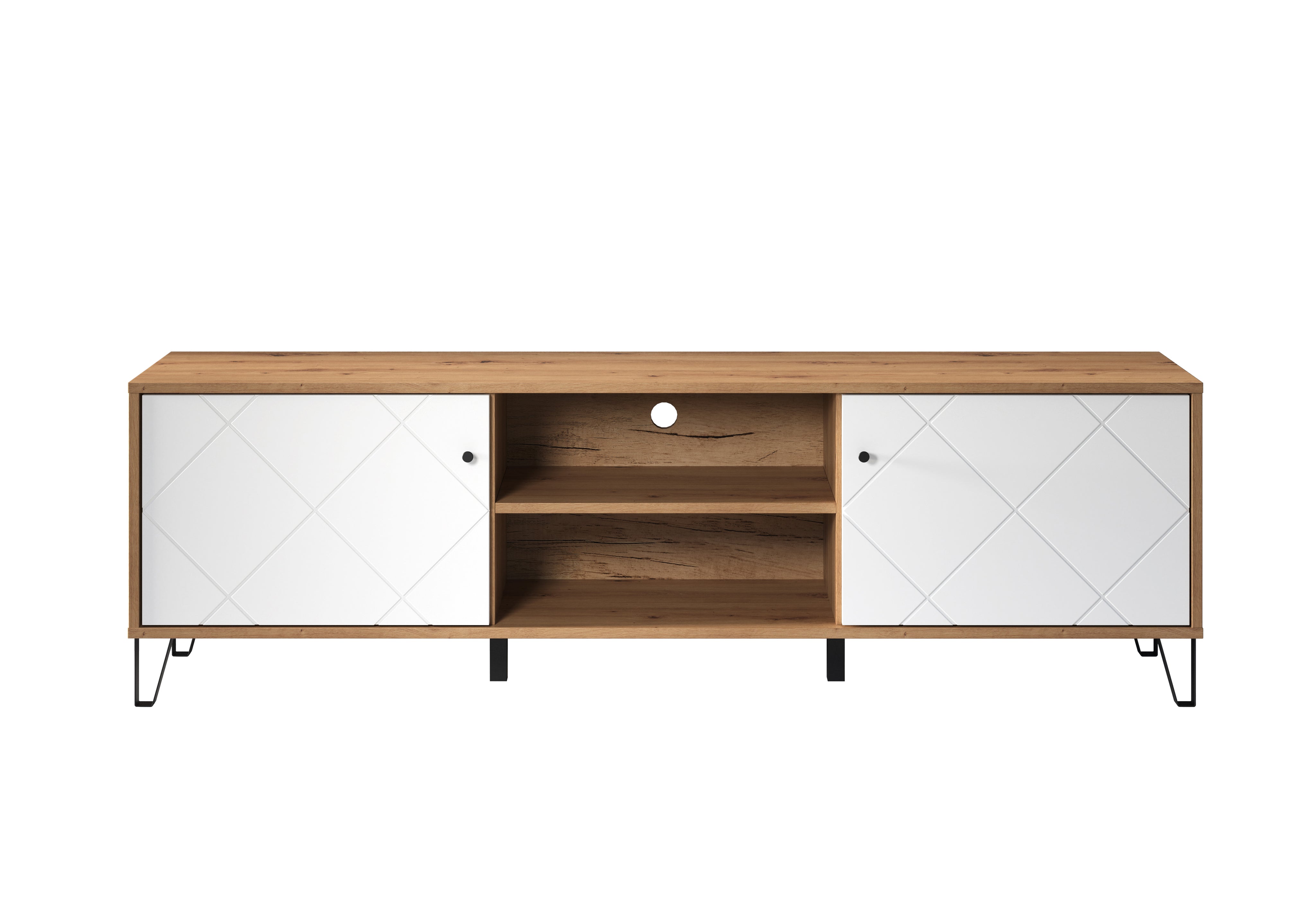 Enhance your living space with the modern and natural look of the Touch TV Cabinet, featuring a warm Artisan Oak melamine body paired elegantly with matt white details. This spacious TV unit provides a stylish base for your television while offering practical storage for media devices, gaming consoles, accessories, and décor.