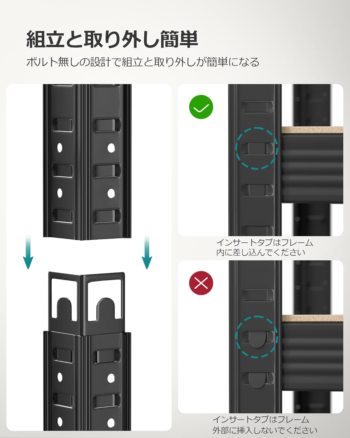 - Note: For your safety, please install the included anti-tip device. Place heavy items on the bottom shelf in order to prevent them from falling over. Please wear the included gloves when assembling. When assembled, you can hear the sound when hitting it with a hammer, so please choose the appropriate assembly location to avoid affecting others