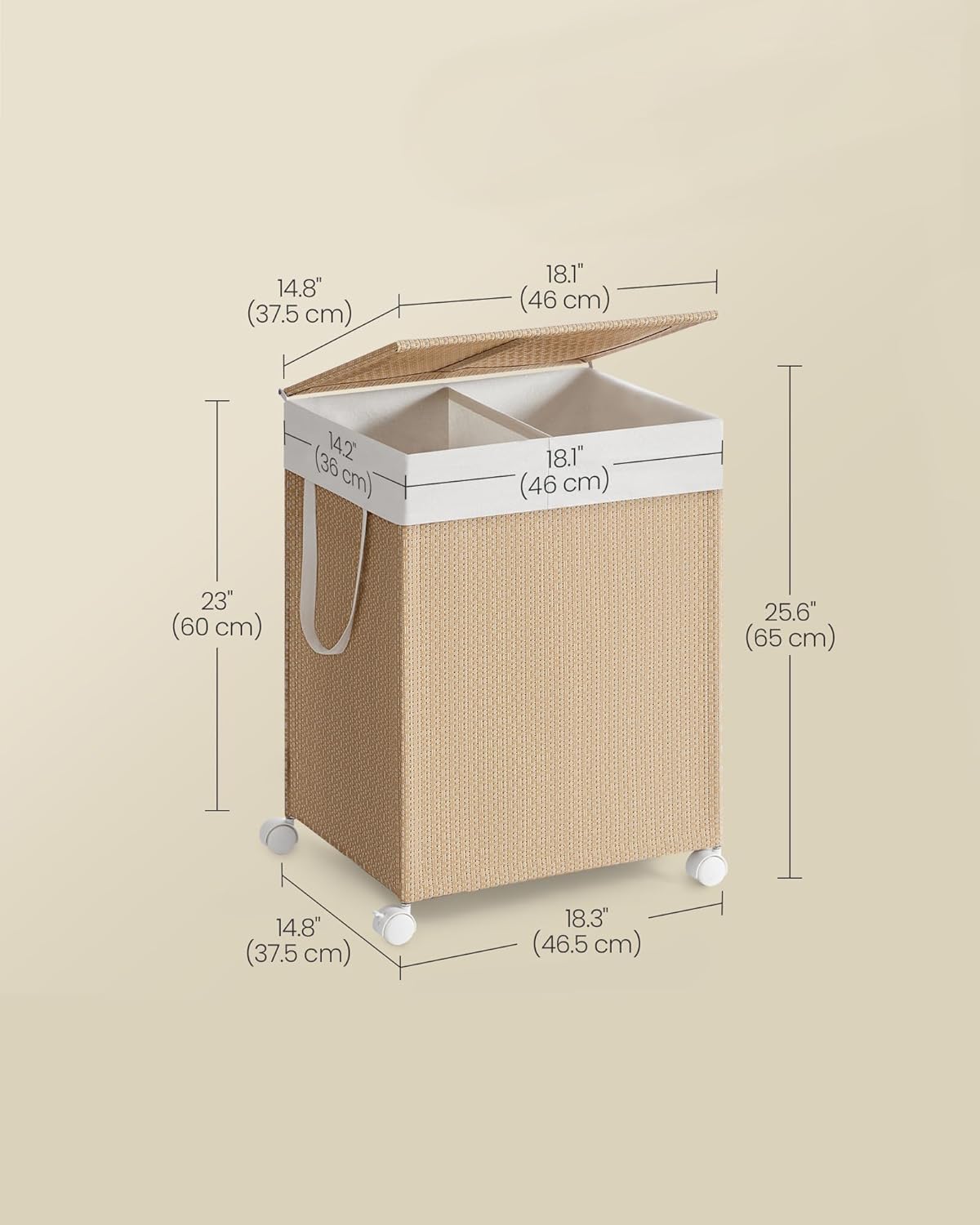 - Lots of storage space for sorted storage: with the 100 litre capacity, this laundry basket offers enough space for a family's laundry. The 2 compartments help you store your laundry separately by color or type