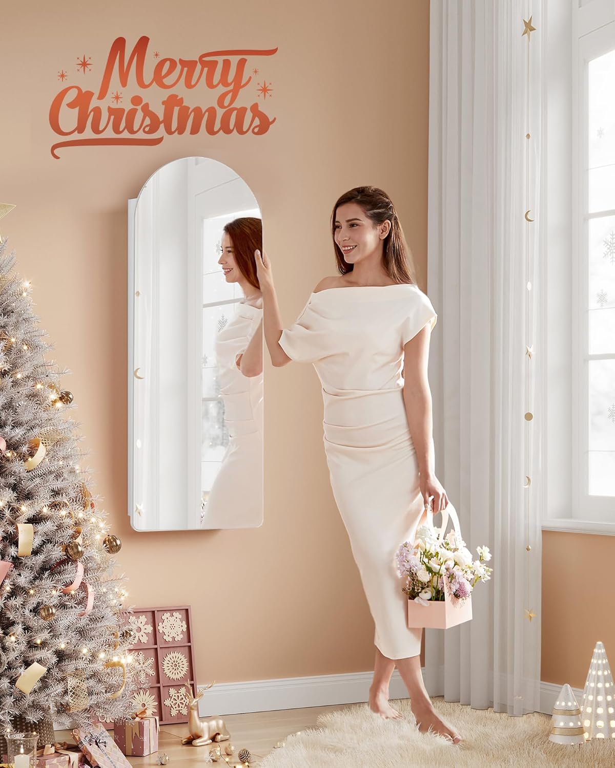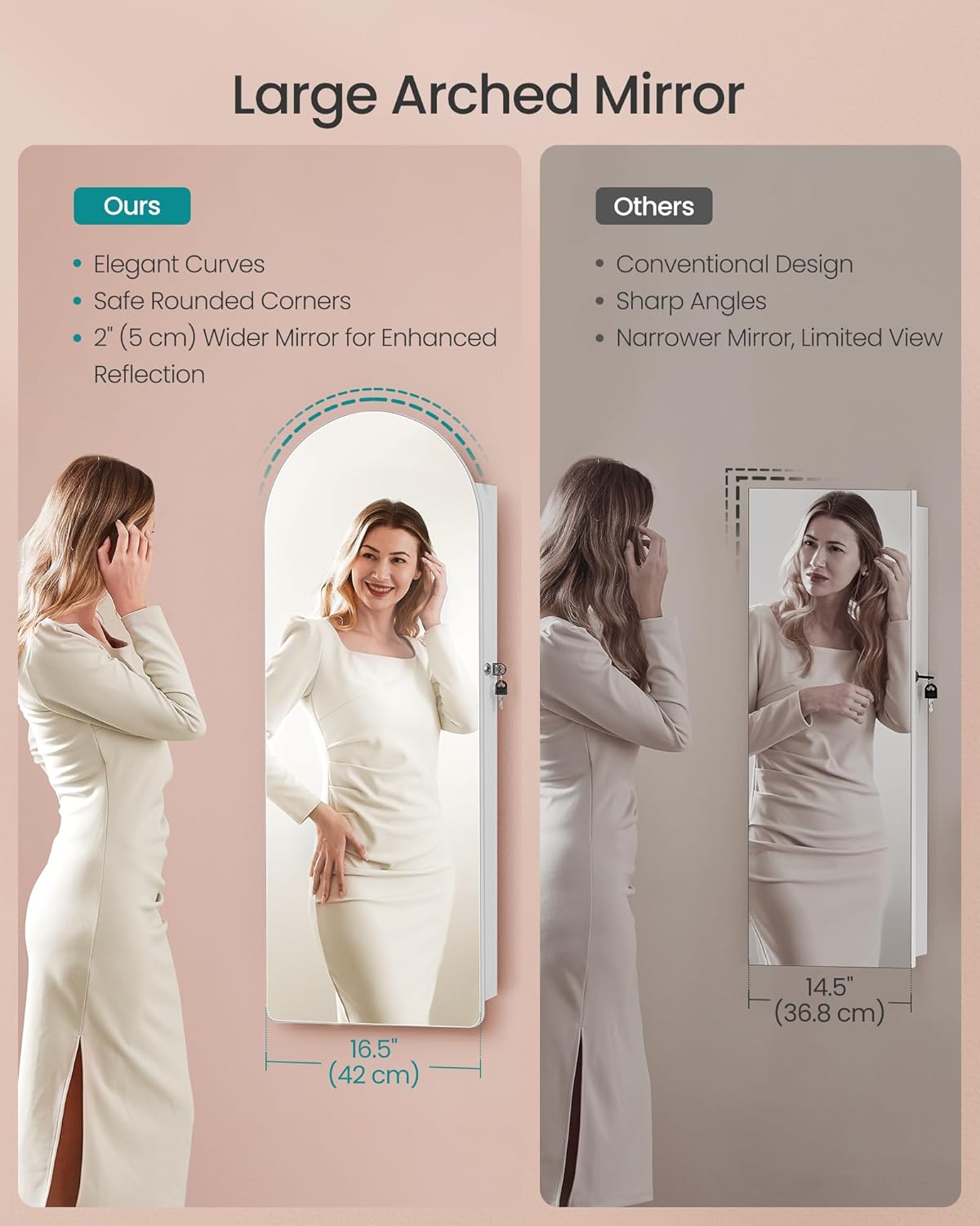 - 【FOR REFINED LIVING】This jewelry cabinet comes from our AILEAS collection, where form meets function. This line of full-length mirrors and jewelry cabinets boasts practical mirrors and elegant round edges, enhancing your beauty routine and living space