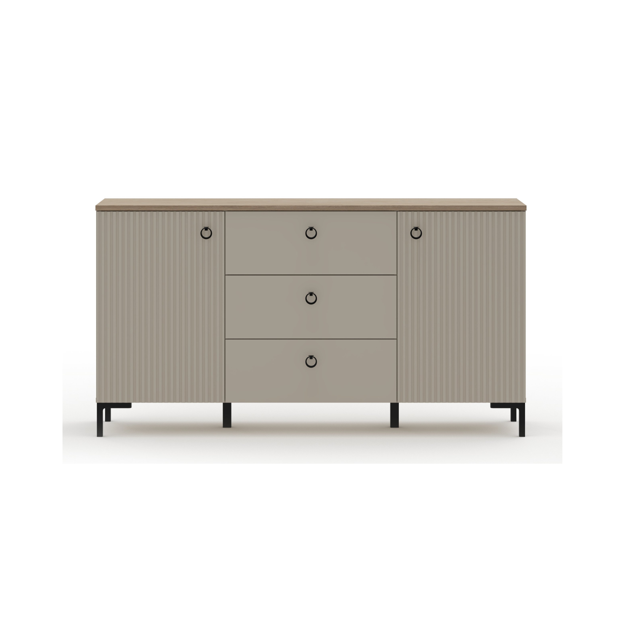 The Lucrezia Sideboard combines modern elegance with warm natural tones, featuring a smooth Cashmere finish beautifully contrasted by Silverjack Oak detailing. With its wider 150 cm structure, this sideboard offers generous storage capacity, making it an ideal statement piece for dining rooms, living spaces, or entrance areas.