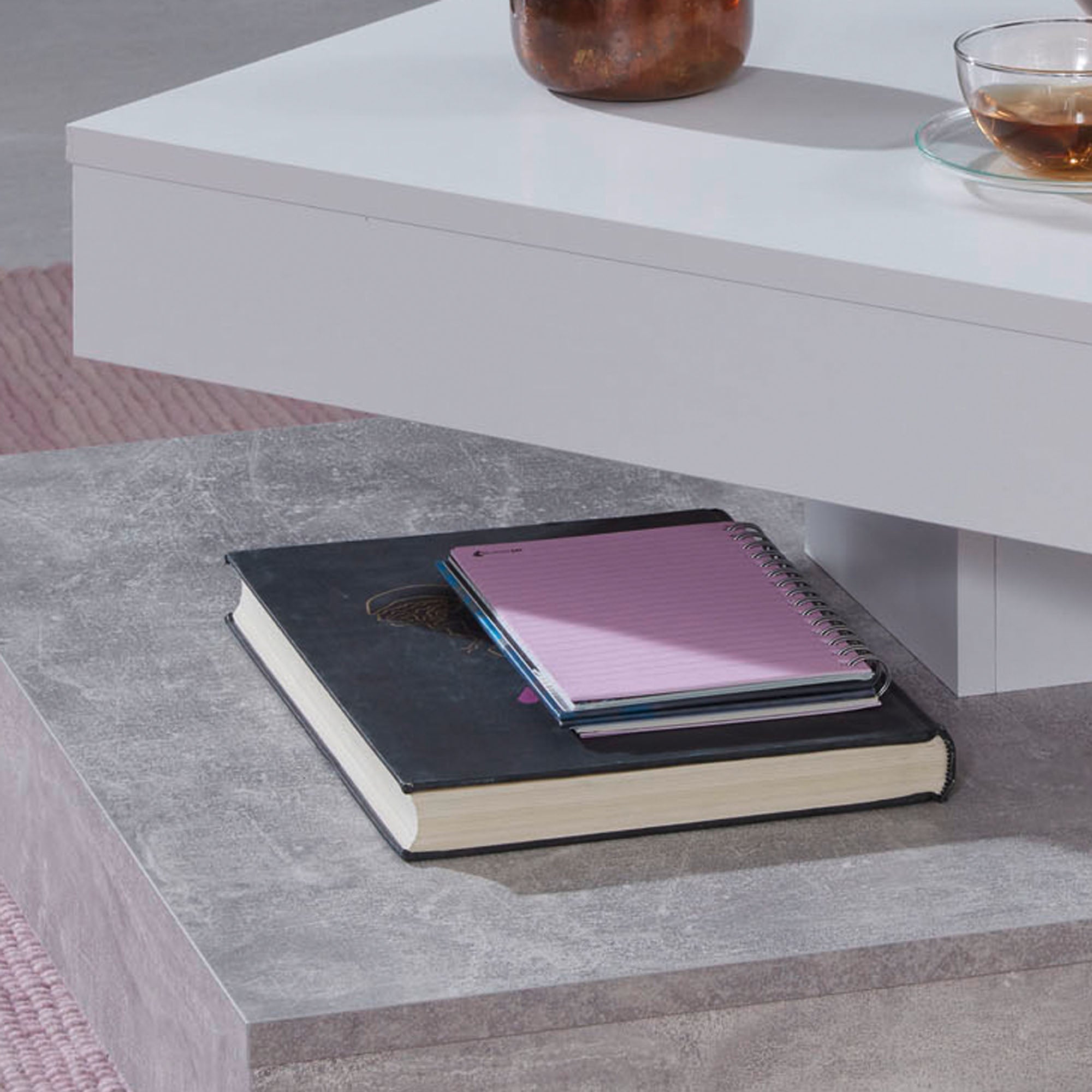 Add modern minimalism to your living space with the Universal Coffee Table, combining a sleek white melamine top with a stylish cement grey base. Its geometric layered design creates an eye-catching contemporary piece that stands out while seamlessly blending into various interior styles.