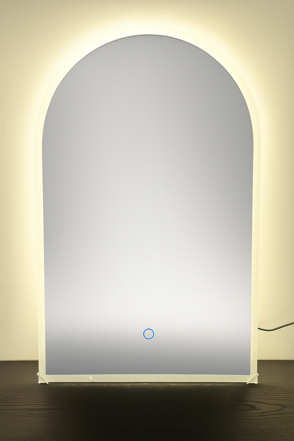 Elevate your space with this elegant arched LED wall mirror measuring 90x60 cm. Designed with modern aesthetics and functionality in mind, it features a soft ambient backlit LED light available in cool white and warm yellow tones to match your mood or setting. The sleek touch sensor button allows you to easily turn the lighting on or off with a single tap. Ideal for bathrooms, bedrooms, dressing rooms, or hallways, this mirror combines style and utility for everyday luxury.