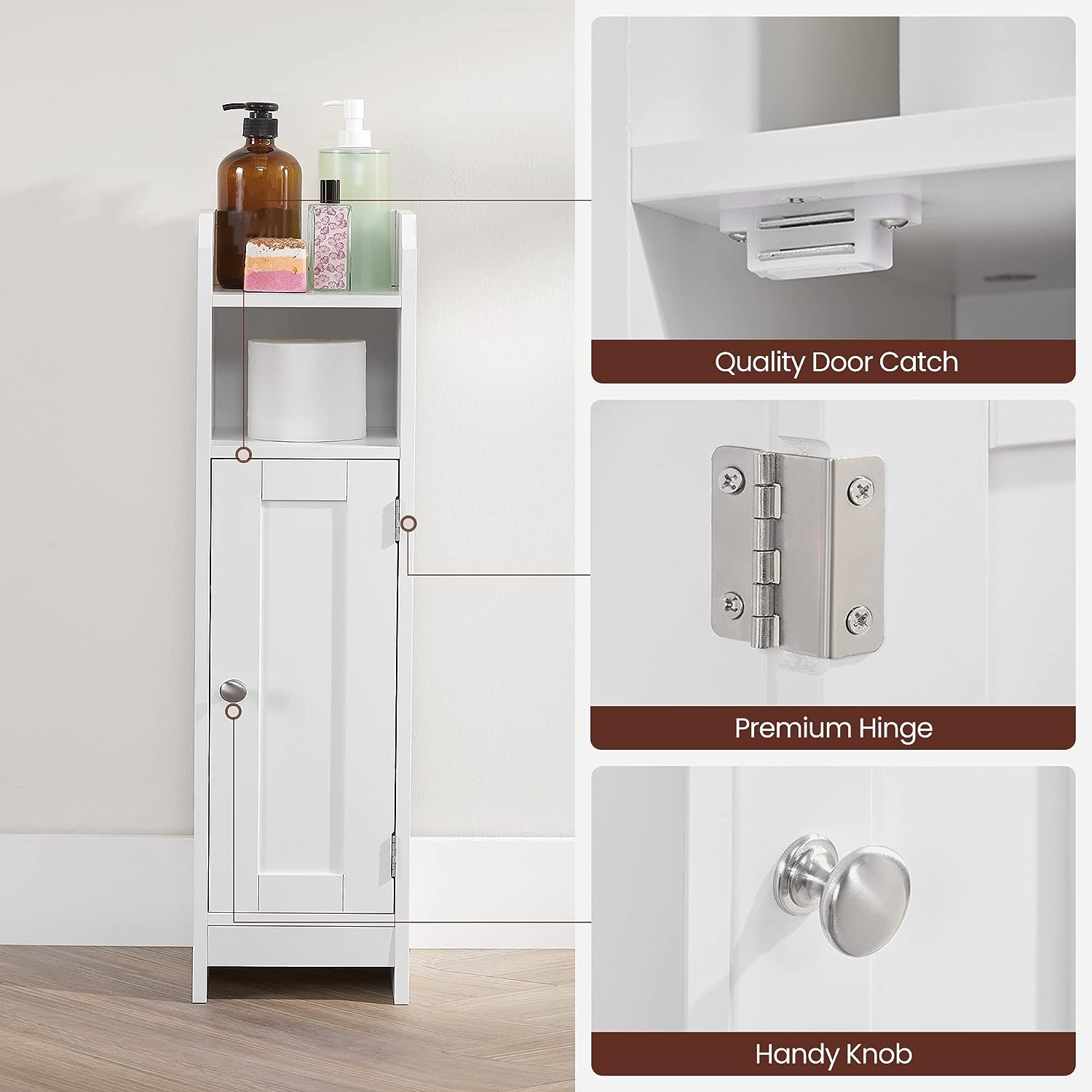 - [Sturdy and Stable] Quality MDF ensures sturdiness and the anti-tip kit prevents the floor cabinet from tipping over for safety. This is a reliable, slim bathroom storage cabinet you can trust!