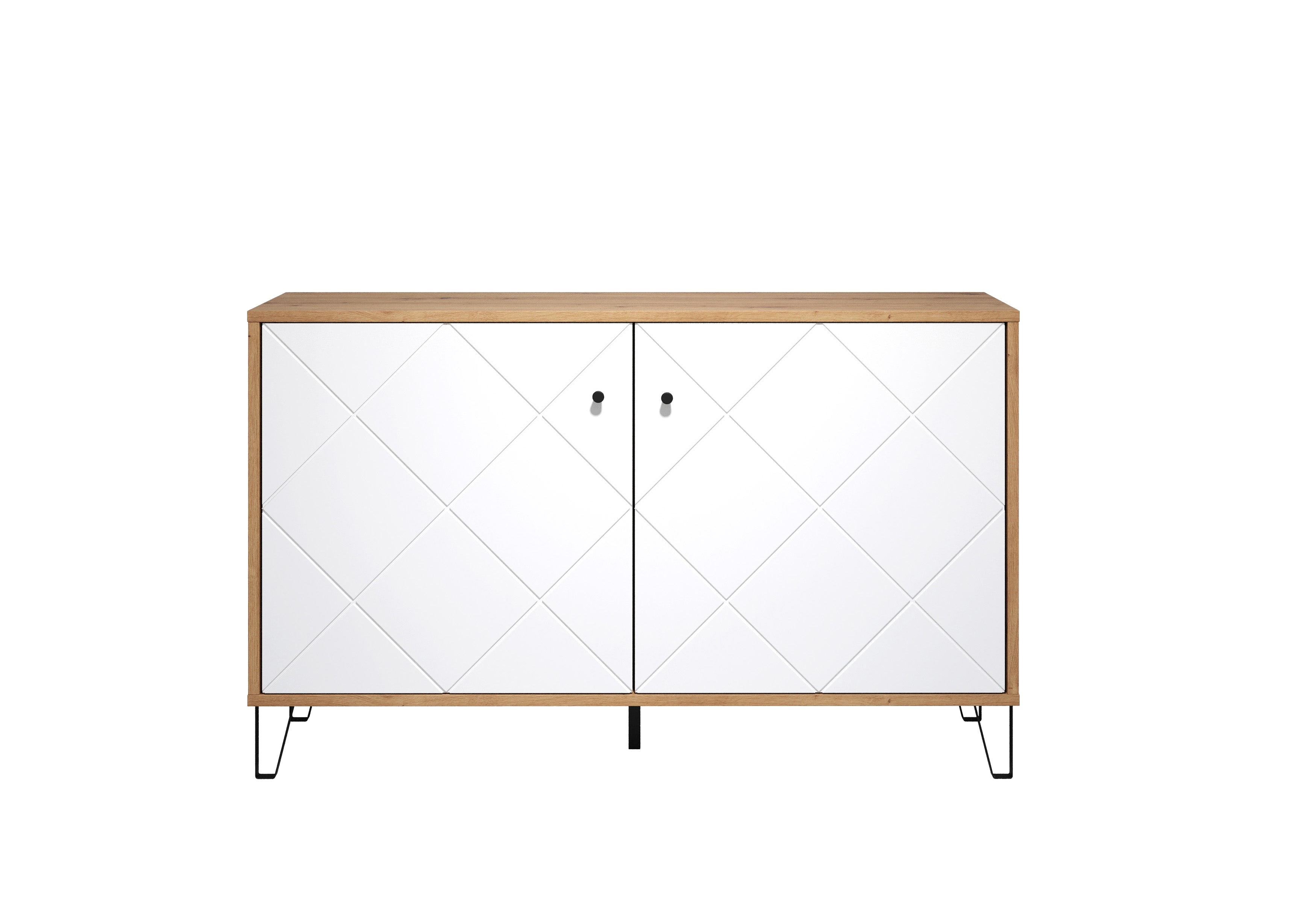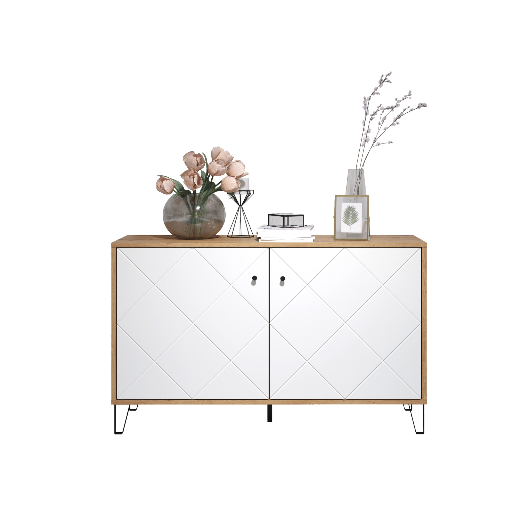 Upgrade your home with the stylish Touch living room sideboard, featuring a contemporary combination of Artisan oak melamine and matte white fronts. Compact yet practical, this sideboard offers ample storage space — perfect for organizing essentials while adding warmth and elegance to your interior theme.
